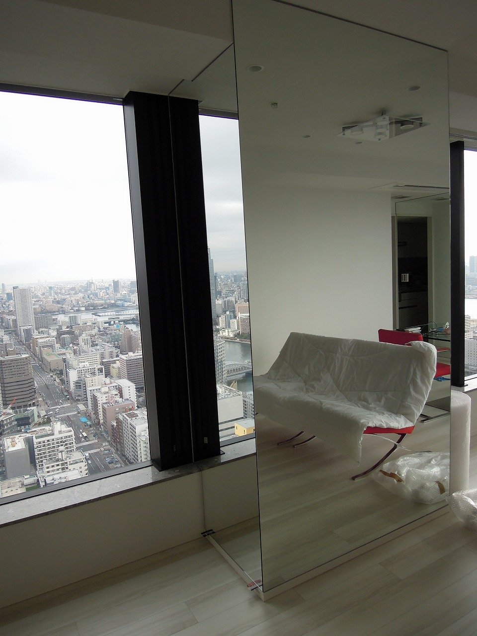 タワーマンションの太い柱が空間の圧迫感になっていたのですが、そこにミラーを貼りたいという依頼をしました。空間が広く見えるし、モデルルームのような雰囲気が出てとても満足しています。ただ、ミラーが大きく搬入などが結構大変だったようで、何度か傷がついてしまったのですが、その都度きちんと再製作をしてやり直してくださって。職人さんたちも皆さん丁寧でプロフェッショナルでした。